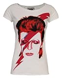 Celebrity Brand, Vintage Distress Print 100% Soft Cotton White Fitted Rock Tshirt Apparel - Vêtements Amplified T ShirtDavid Bowie Print100% CottonMachine Washable