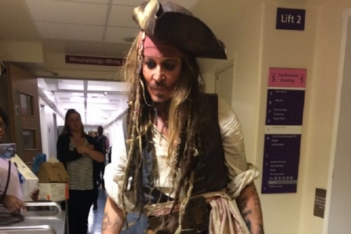 Johnny Depp se encuentra en Londres y ha aprovechado para darle una sorpresa a los pequeños ingresados en el Great Ormond Street Hospital. La estrella cinematográfica se disfrazó de su personaje más conocido, el capitán Sparrow para dejar boquiabiertos a los niños ingresados en el centro médico, con el que además de conversar pudieron tomarse unas fotos.