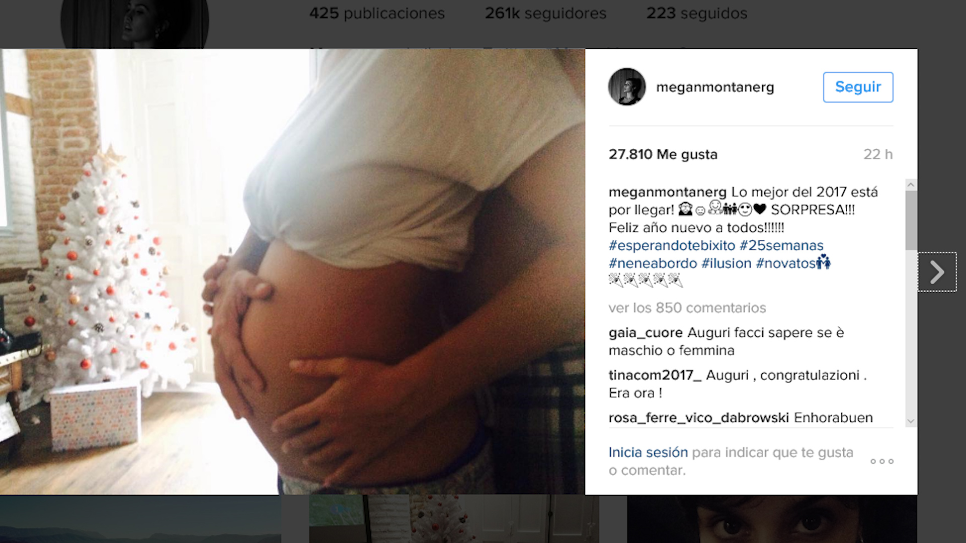 Con una fotografía en su Instagram en la que luce una incipiente barriguita, Megan Montaner ha sorprendido a sus fans anunciando embarazo sorpresa en las redes. La actriz de 29 años y su novio, Gorka Ortúzar están esperando su primer hijo. Megan ya se encuentra de 25 semanas de gestación y ha querido compartirlo con sus seguidores para empezar el año nuevo de la mejor de las maneras.